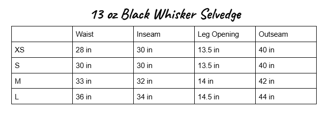 13 oz Black Whisker Selvedge