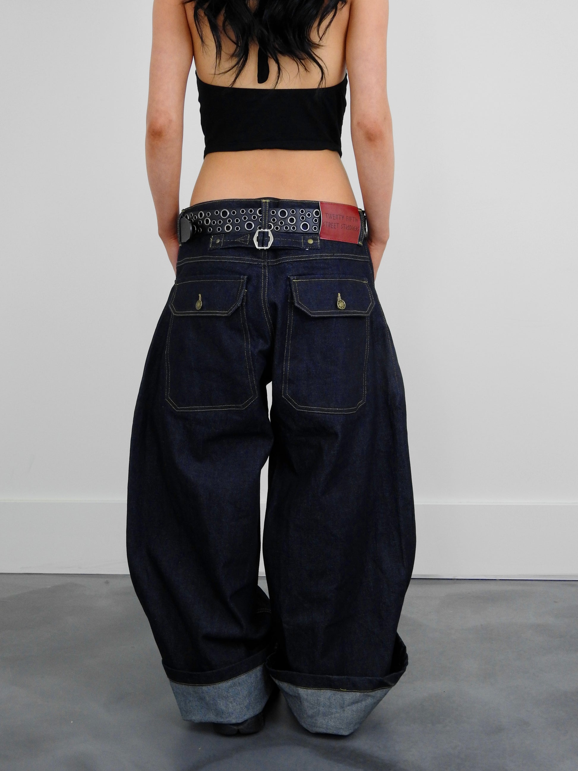 Our 13 oz selvedge denim featuring an exposed five-button fly, classic buckle back, and also authentic selvedge ID. These jeans are made to be unique and stand out.